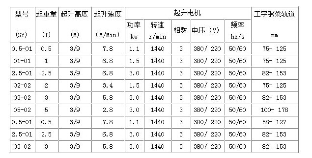 本產品SY型環鏈電動葫蘆起升高度?起升重量?請點擊>>技術參數
