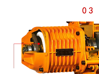 新設計的磁力產生器,其特性為產磁。可在電源切斷的同時剎車,保證吊重時 剎車安全。