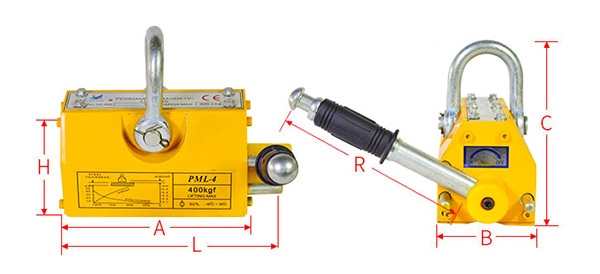 永磁起重器由高性能釹鐵硼永久磁性材料組成強磁系統,通過手柄的轉動,改變強磁系統磁力達到對工件的吸持和釋放。起重器上部有供提起物件的吊環,下有一V形槽供吸持相應的圓柱形物體所用。 永磁起重器采用的高性能永磁材料是:稀土永磁一釹鐵硼為磁源,具有不耗電、吸力強、剩磁低、操作輕便、壽命長、安全可靠等特點,產品結構先進,按照出口標準組織生產,品質性能達到國際同類產品先進水平。廣泛用于機械工業、模具制造業、倉庫和交通運輸等部門搬運鋼板、鋼錠等導磁性物體。